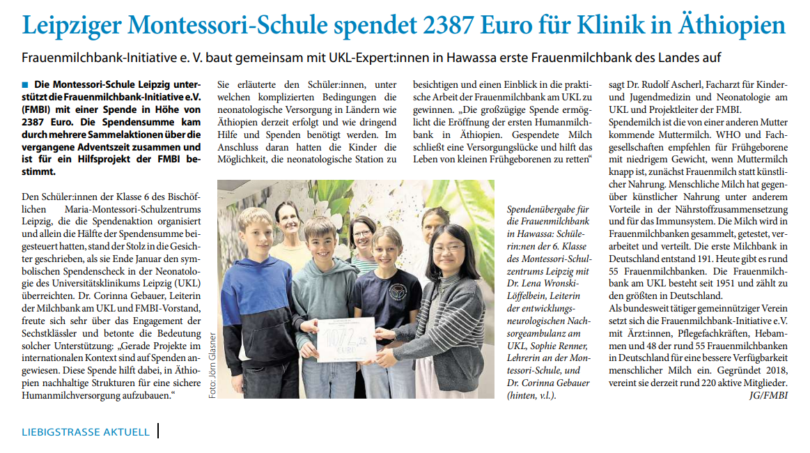 Leipziger Montessori-Schule spendet 2387 Euro für Klinik in Äthiopien Ulrike Sturm-Hentschel19. Februar 2026 Facebook0 Twitter Reddit 0 Likes
